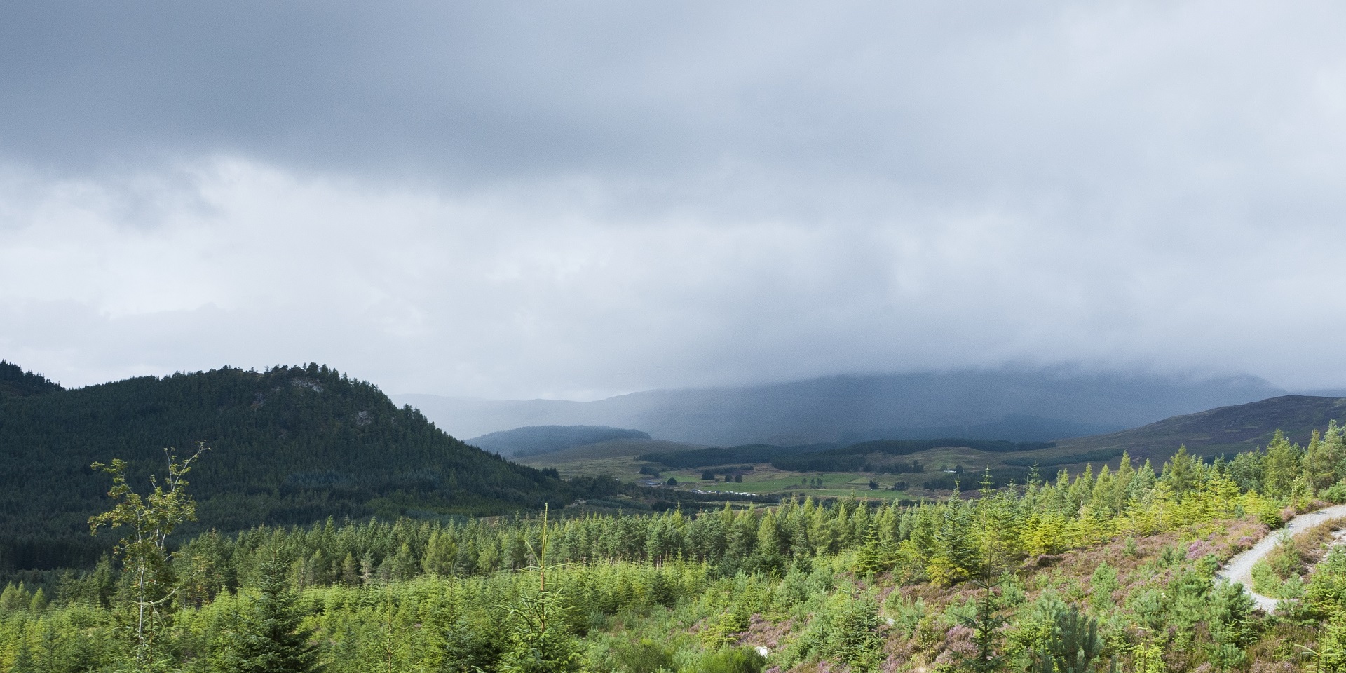 - Parking notes – One mile on wide forest road with passing places off A816. Fairly level