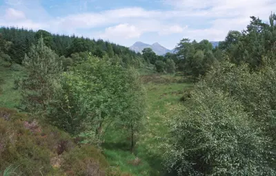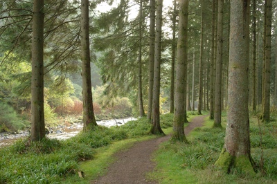 Look for wildlife as the trail passes through the towering trees that flourish around the River Luachragan