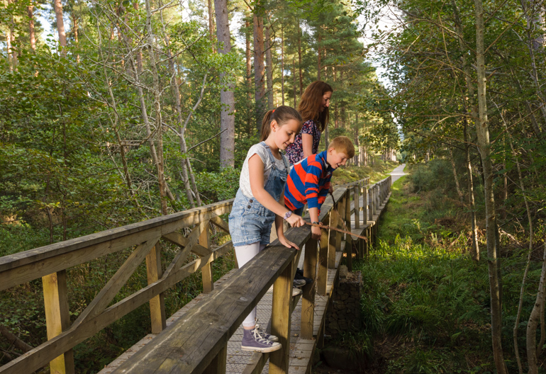 The forest is a haven for wildlife, so look out for deer, red and black grouse and many birds of prey